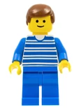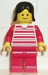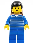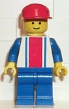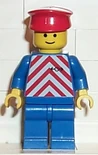 Minifigures: The set contains eleven minifigures. The first one is the train engineer, who has a blue body and a red hat that the white version of is often seen on police officers from the Police subtheme. The second is a worker with blue clothes and is seen pushing a cart with luggage. Another has a white shirt with a red line and two blue ones, and a blue cap. He is seen with a black bike. One other has a blue shirt and is on a red bike. It comes with several other figures.