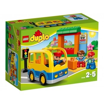 All aboard the School Bus! Build a bus shelter where the 2 children can check the timetable and wait for the bus to arrive. Help the bus driver stop at the traffic lights and drive to the shelter to pick up the children. Then head off for a busy day at school. Young children will love to build and rebuild this great model with big, brightly colored LEGO® DUPLO® bricks. Includes a bus driver and 2 child DUPLO figures.
