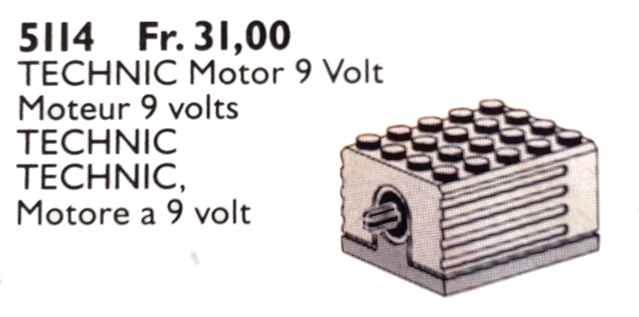 5114 | Technic Motor 9V | 1 | $16.00 | 1991 | |