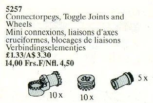 5257 | Connector Pegs, Toggle Joints and Wheels | 25 | 1989 | ||