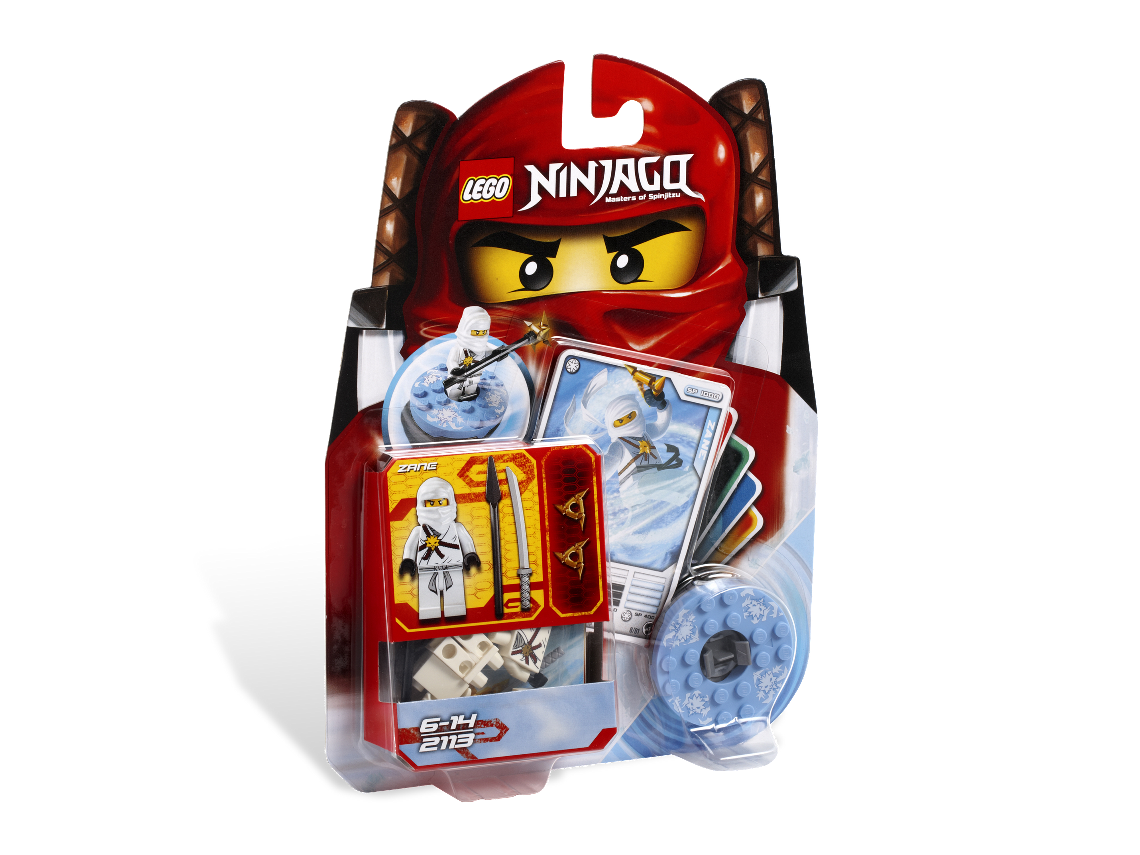 2113 Zane is a 19 piece Ninjago set released in January 2011. It includes the Zane Minifigure armed with a flat-silver katana, a flat-silver spear, and two golden shurikens on a black pole. The set also includes four battle cards for the spinjitzu game, as well as Zane's statistic card.