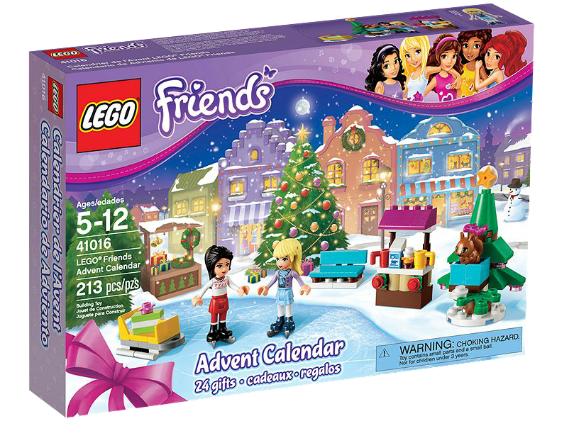 41016 Advent Calandar is a Friends Seasonal set released in September 2013. It includes Stephanie, Lily, squirrel, and 24 Christmas themed mini-builds. It cost US $29.99, and UK £19.99.