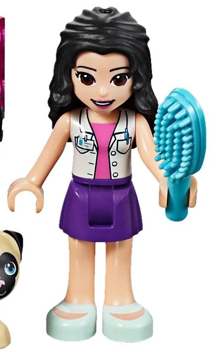 41360 Emma's Mobile Veterinary Clinic is a 4+ Friends-themed set released in 2019. It includes Emma, vet's van, examination bed, a pug, and a few accessories. It cost US $9.99, and UK £7.99.