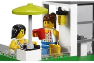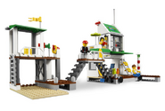 The main portion of the set is the marina which has two connected sections. The first section of the marina has a tile to place on a dune buggy.[1] On the right side of the tile are pieces forming a dock. On top of the dock and the tile are stands supporting up a tower. The tower has a ladder, a banister, a flag, and doors supporting up a dark green roof.[2] The second section has a dock with a large beach supply shop. The interior of the shop features a cash register and many supplies for the beach including surf boards and flippers.[3] Next to the shop is a small lighthouse with a green light. An archway staircase intertwines the two sections, and has enough room for a small boat to pass through.