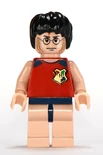 The set includes Harry Potter, Ron Weasley, Hermione Granger, Viktor Krum, and a Merman. Both Ron and Hermione have two faces on each side of the head - one asleep and one awake. Krum (who comes with a shark's head piece), the Merman, and Harry's gillyweed state are all exclusive to this set. Almost the exact same Hermione minifigure is included in 5378 Hogwarts Castle but with different hairpieces. Ron's hairpiece is also darker than his last appearance in the Harry Potter and the Prisoner of Azkaban themed sets.