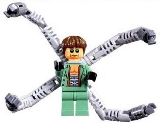 4854 Doc Ock's Bank Robbery is a Spider-Man 2 set released in 2004. It represents the bank robbery that was carried out in Spider-Man 2 by Doc Ock. Five Minifigures are included along with a bank, bank vault, trike and police car. Spider-Man has a web piece.