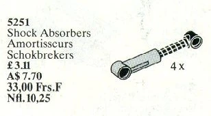 5251 Shock Absorbers is a TECHNIC accessory set released in 1989. It includes four, grey and black shock absorbers.