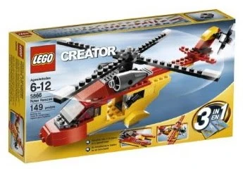 5866 Rotor Rescue is a Creator set released in 2009. It contains 149 pieces and building instructions for three different models, including a helicopter, air show bi-plane, or a high-octane speed boat. The helicopter configuration in the set resembles a helicopter used by the US Coast Guard, mostly the Eurocopter Dolphin, hence the name Rotor Rescue. Although it resembles this, LEGO.com says it is a mountain rescue helicopter. It is recommended for children aged 6 through to 12.