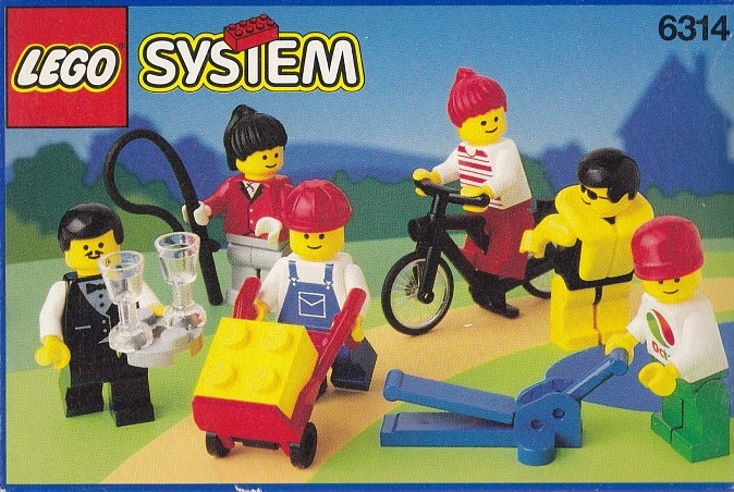 These people may remind you of people in your city. They are ready for adventures in LEGO Town. Includes Jockey, Stuntman, Waiter, Construction Worker, Gas Station Attendant, and Girl on Bicycle. 27 pieces.