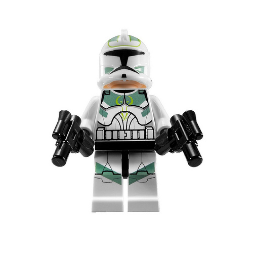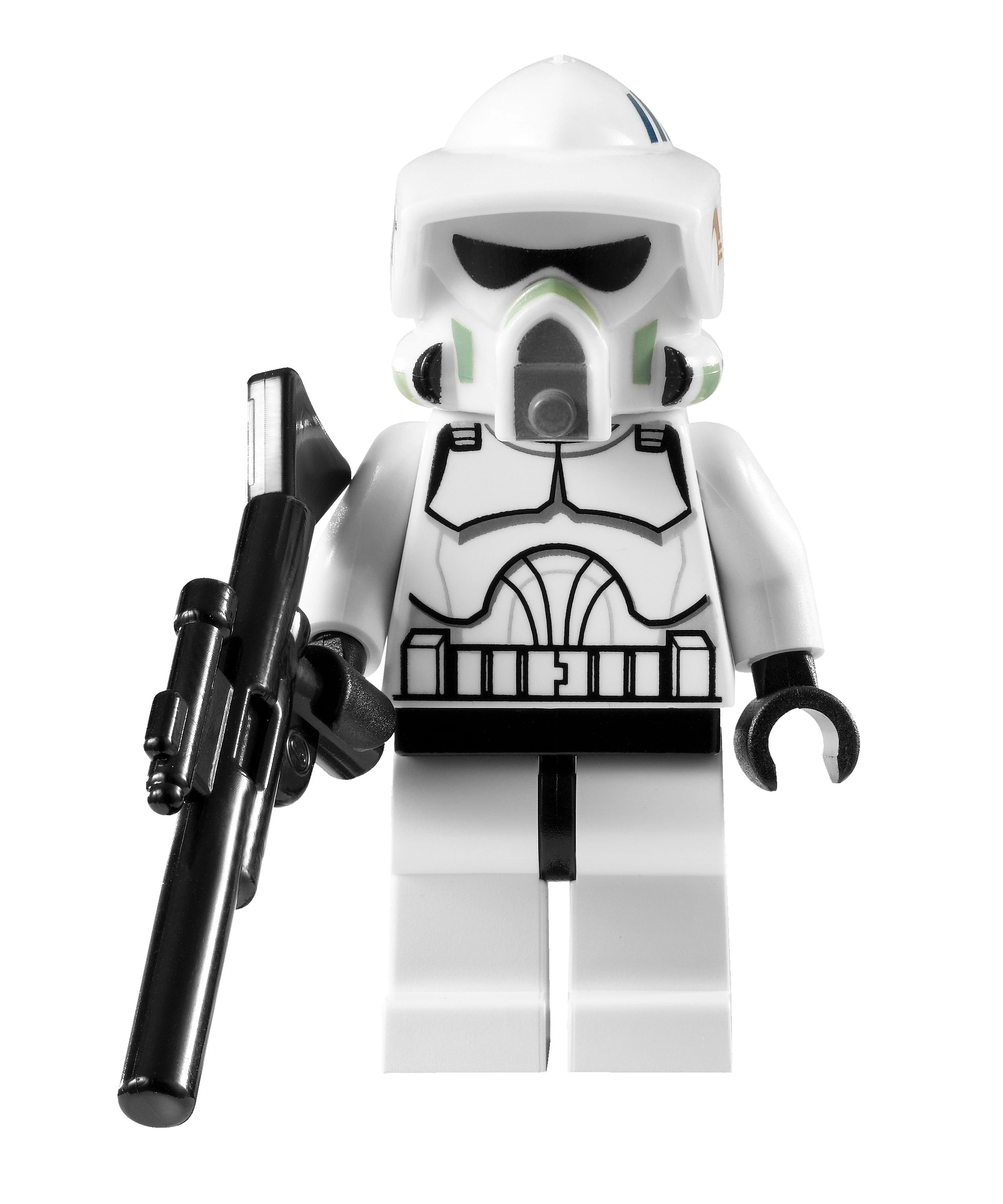 The ARF Trooper features a helmet which is a brand new mould. The printed visor is precisely in line with the eyes of the minifigure wearing the helmet. The torso is that of a standard Clone Wars Clone Trooper and so therefore has no extra markings to show rank or battalion to which he belongs to. He is also the only minifigure in the set with no leg printings.