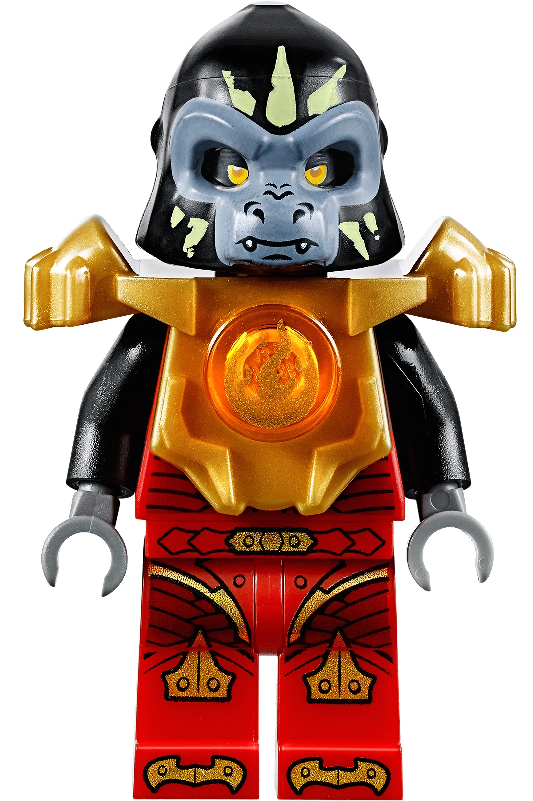 Gorzan is trapped in the ice cage and must escape with the CHI before Sir Fangar can catch up with him. Help the Gorilla tribe leader slice through the ice with his red-hot Blayzhamma. Dodge the ice-tipped flick missiles shot from Sir Fangar’s chillingly awesome Saber-tooth Walker. Stay clear of its ice claws, snapping jaws and giant saber teeth, and move fast to evade Stealthor on the detachable trike! Includes 3 minifigures with assorted weapons: Sir Fangar, Stealthor and Gorzan.
