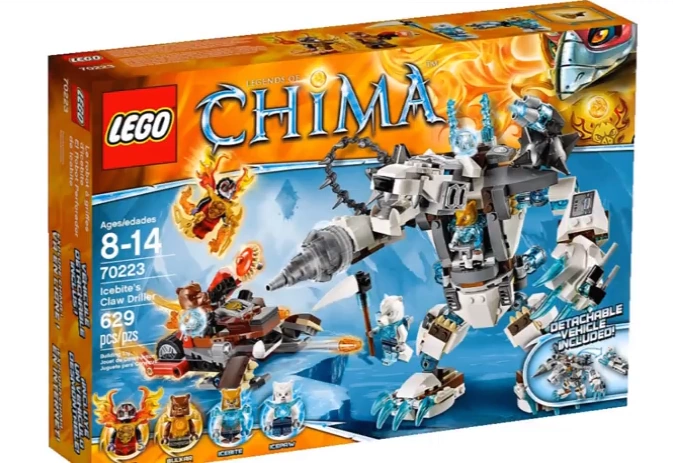 Dodge the LEGO® Legends of Chima™ Icebite’s Claw Driller with rotating torso, spinning drill, flick missiles and detachable Blaster Bike.