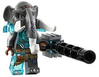 - Mammoth’s Frozen Stronghold features a mammoth-head-shaped control centre with computer screen, movable tusks and adjustable trunk with 2 stud shooters, Mammoth Tusk Flipper vehicle launch function, turret with rotating disc shooter, frozen prison turret, blacksmith area with hammer and anvil, ammunition depot with extra discs for the disc shooter, and blue and orange CHI crystal elements