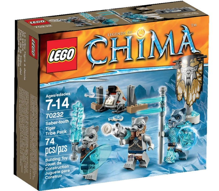 Freeze rival tribes, plants and animals with the Saber-tooth Tiger Tribe! Unite the warriors under the Saber-tooth Tribe banner and prepare for combat. With the Ice Sling disc shooter and a range of ice-cool hand weapons, the Saber-tooths have all the weaponry to triumph in their quest for CHI. Position the soldiers behind the walls, lure the enemy in and then launch a strike! Includes 3 minifigures with assorted weapons and accessories: Saber-tooth General Sirox and 2 Saber-tooth warriors.