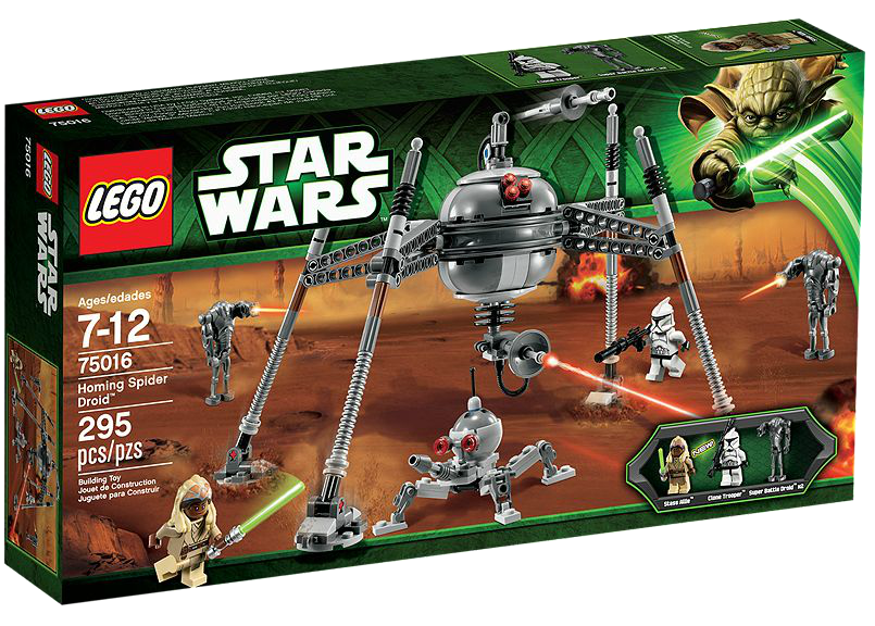 75016 Homing Spider Droid is a Star Wars released in 2013. It is the second set which features a Homing Spider Droid as the main feature.