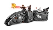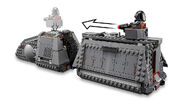 Detachable, wheeled cargo wagon features opening sides and top hatch, a movable rotating gun turret with 2 stud shooters, a hitch at the back and studs on the side for the Range Troopers to walk on. Inside, there's an access ladder leading to the top hatch and space for the 4 included coaxium containers.