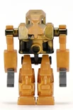 Meca One: Meca One looks like a gold devastator, with black markings, particularly around the lower chest. His eyes are not coloured. Both Meca One and the Iron Drones are made of parts used almost exclusively to make them, except for their hands, Meca One's arms and the Technic pieces in their heads.