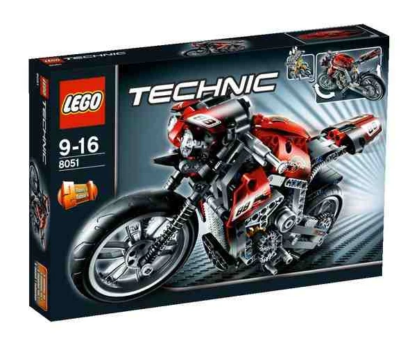 8051 Motorbike is a TECHNIC-themedset released in 2010. It contains a red motorbike, built up of 467 pieces. It has working front and rear suspension, a 3-cylinder engine with moving pistons, working steering, a working chain drive and a working kickstand. The alternate model is a chopper motorcycle.