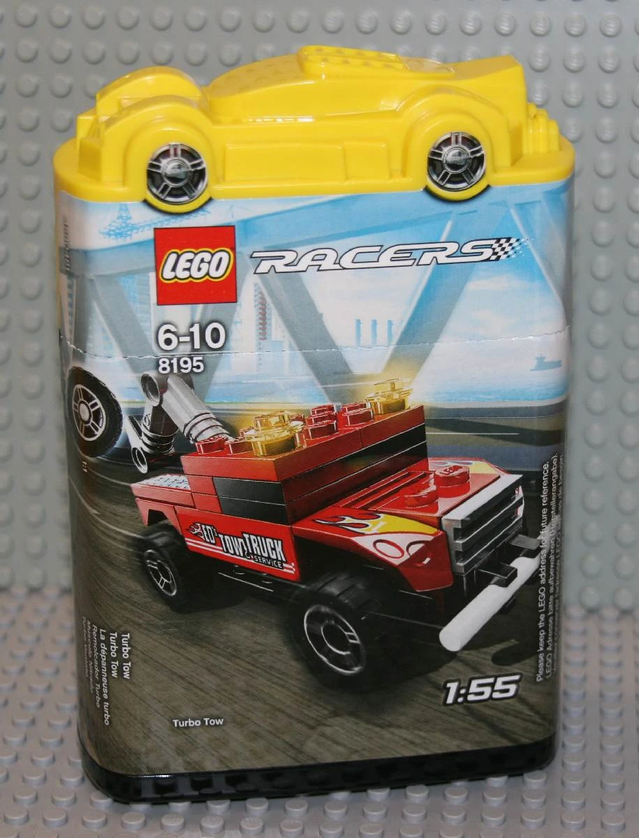 8195 Turbo Tow is a Racers set released in 2010 as part of the Tiny Turbos line. The set includes a miniature hot rod-style tow truck.