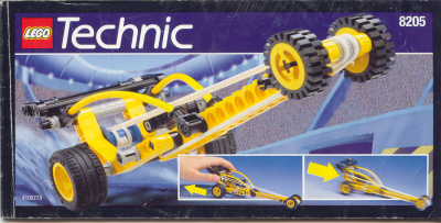 8205 Bungee Blaster is a TECHNIC set released in 1997. You can pull the yellow, black, and grey car back and then release it. The back has some additional ways of how you can build the bungee blaster, with the pieces included in this set: