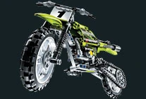 8291 Dirt Bike is a TECHNIC set released in 2008. It contains a green dirt bike with a "1" on the front. It features working front and rear suspension, moving piston engine, chain drive and steering. It also contains instructions for the alternate model, a chopper.