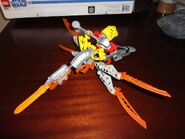 8594 Jaller and Gukko is a BIONICLE Titans set released in 2003. It featured the Ta-Matoran Jaller and a Gukko bird. Combine with 8593 Makuta and 8595 Takua and Pewku to make Makuta Nui.