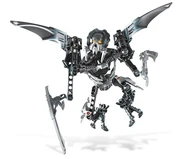 Mad master of shadows! When there is evil to be done, insane genius Makuta Chirox unfolds his wings and takes to the sky. Armed with a Tridax Pod, blade hooks, and Mask of Silence, this twisted being creates bizarre creatures and brings darkness to Karda Nui.