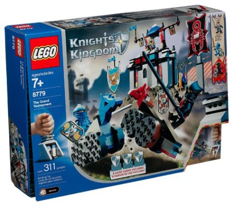 8779 The Grand Tournament is a Knights' Kingdom II set that was released in 2004. The set includes a small fortress to watch the tournament from, including a throne for King Mathias, two slammers, Jayko and Vladek on their brick-built horse mounts, and three stands.