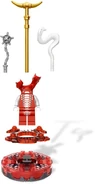 9571 Fangdam is a Ninjago spinner set released in May 2012. It contains Fangdam, a spinner, a spinner crown, a character card, four battle cards, a golden horned staff of control, a white viper (sly viper), a silver mace, two translucent red 1x2 bricks and a red 2x2 plate. The spinner is gunmetal and red with a translucent red spinner crown.
