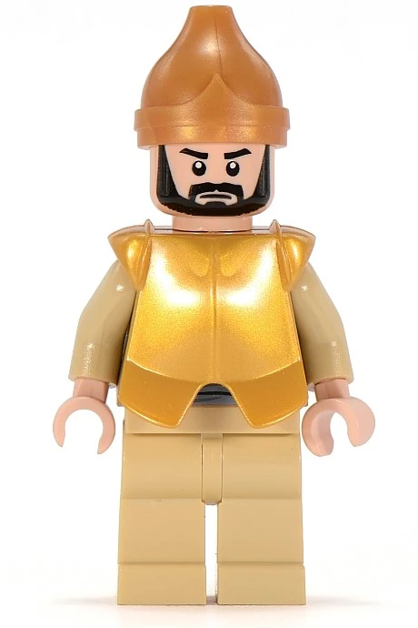 Asoka is an enemy of Dastan, but is Princess Tamina's best warrior (Dastan is not aware of this from the start). He has a Spear, a Gold Breastplate, and a new helmet piece. As seen on the 7571 Fight for the Dagger box art, Asoka has the Dagger of Time being flung out of his hand, as he had captured the Dagger to complete his assigned mission.