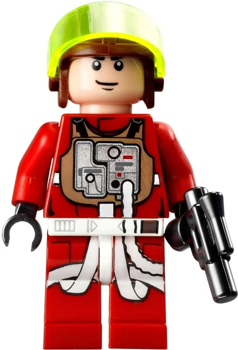 There are four types of B-Wing pilots. The first two both wear red suits and the same type of helmet, however the head of the pilot included with 7180 B-Wing at Rebel Control Center is yellow, while the head of the pilot included in 6208 B-Wing Fighter is flesh-coloured. In 2013, a newer version was released, with a new printed torso, printed legs, and a different helmet piece with a yellow visor. In 2014, a new variant was released, with a new colour scheme, a new helmet mould, a new printed face with violet visor, and new printing on the torso and legs.