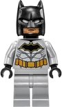 This version is based on the DC Rebirth comics. It is very simplistic with yellow lining around the Bat-symbol. There are three variations, one two in a light gray (one doesn't have a cape), and one in a dark gray with different lining and symbol.