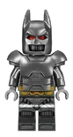 Based on Batman's Thrasher Suit from the City of Owls storyline which is in the 76110 Batman: The Attack of the Talons set. The suit has a metal coloured cowl and chest-piece which can hold items on its back. The face can revolve between having a red-visor and breathing piece and between a replica of the aforementioned design but broken and showing Bruce Wayne's face.
