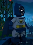 In 2014, a version was released based on his appearance in the TV series Beware the Batman. He has his new cowl, his standard face, and cape. His torso, arms, hands, and legs are medium stone grey, while his hips are black. His torso is printed with the series' bat symbol, the suit's cut on his body, and he has a yellow belt. The back features the back of the belt and the back muscles on his suit.