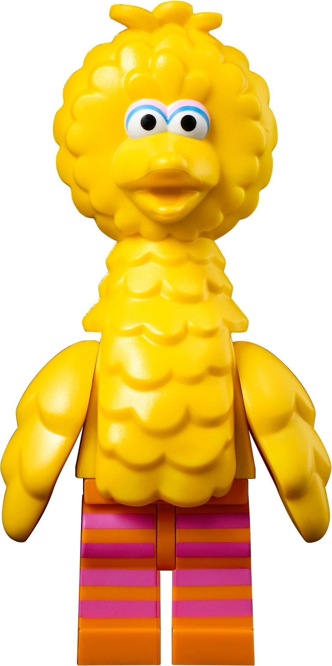 Big Bird is a Sesame Street LEGO Ideas minifigure who was introduced in the set 21324 123 Sesame Street. He uses the chicken suit guy's arms in yellow and his head mould is made of rubber.