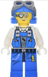 Brains looks very much like an intelligent individual, fitting his name. His looks vary depending on the theme, but is clearly recognizable as the same character. In both themes, he has an eyepiece that covered one eye, and a mustache that is a gray colour. In the Power Miners theme, he wears a suit similar in appearance to Duke's, although his torso, sleeves, and gloves are white and his uniform's emblem shows a test tube instead of a drill. While with the Power Miners, his eyepiece simply attached via a "bar" to the side of his head.The actual eyepiece is just circled around his right eye and showed something shaped like a diamond piece, likely resembling a blue crystal in general.
