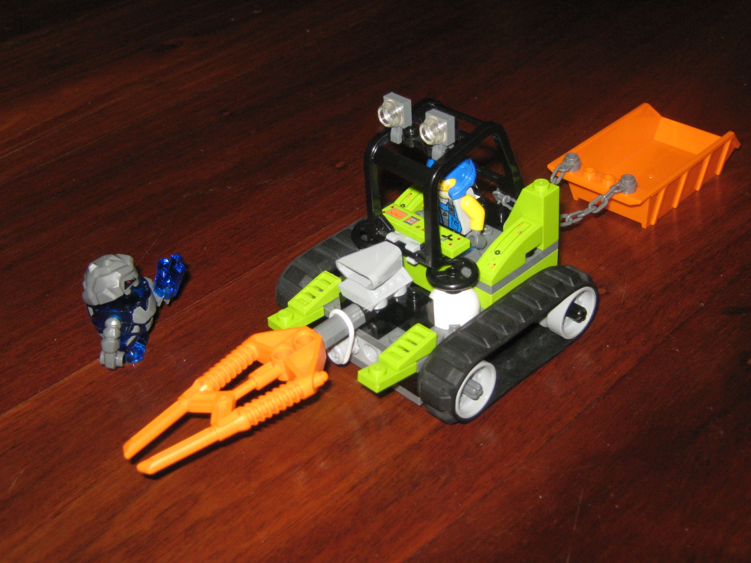 The Cargo Crusher is a Power Miners set made from the pieces comprising the Granite Grinder. Its instructions have only been found in New Zealand.[source?] It has a rotating drill that revolves using a V-Band and planetary gears.