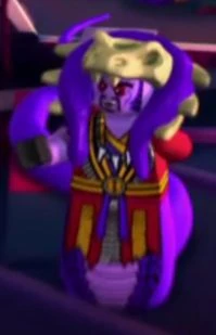 - His appearance is referenced to Shang Tsung from Mortal Kombat. He may also be based on Mola Ram from Temple of Doom.