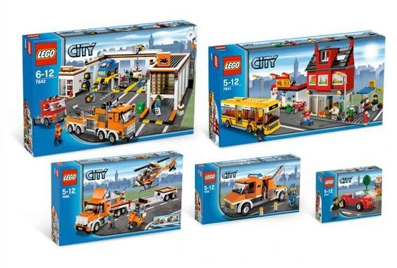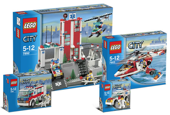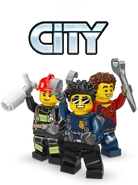 City is the thematic title under which most Town-related System sets were released from 2005 and onward. There are numerous sets that are associated with Construction, Police, Fire, Emergency, Train, Airport, Transportation, Cargo, Traffic, Coast Guard, Farm, Great Vehicles, Mining, Space, and Stuntz. European catalogs featured another theme called City in the years 1999 to 2000, which was referred to as City Center in American catalogs.