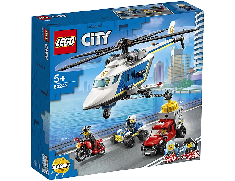 ![]() | 60046 | Helicopter Surveillance | 528 | Policeman (x3), Crook (x2) | $74.99 / €59,99 | 2014 |