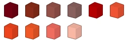 There were ten colours under this main colour including New Dark Red, Rust †, Flip/Flop Red †, Sand Red †, Bright Red, Bright Reddish Orange †, Flame Reddish Orange †, Neon Orange †, Medium Red †, and Light Red †.