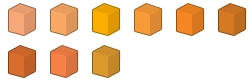 There were nine colours under this main colour including Light Orange †, Warm Yellowish orange †, flame yellowish orange †, Medium Yellowish Orange †, Bright Yellowish Orange †, Bright Orange, Light Orange Brown †, Medium Orange †, and Curry †.