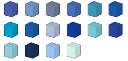 There were sixteen colours under this main colour including Medium Bluish Violet, Medium Blue, Sand Blue †, Medium Royal Blue †, Tiny-Medium Blue †, Royal Blue †, Tiny-Blue †, Bright Blue, Light Bluish Violet †, Dark Royal Blue †, Dove Blue †, Bright Bluish Violet †, Light Blue †, Earth Blue, Light Royal Blue †, and Aqua †.