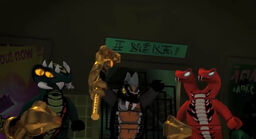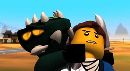 In the apartment, Lloyd is alone playing a video game, when Skales breaks in. Although he attempts to get out, the door is locked and he can't unlock it. Just before Skales could get Lloyd, they both hear Sensei Wu and Nya on the opposite side of the door.