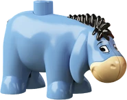 Eeyore is a DUPLO Figure that appears in the Winnie the Pooh theme. He is a blue and peach coloured donkey. He has appeared in both the new and old versions of the Pooh theme.