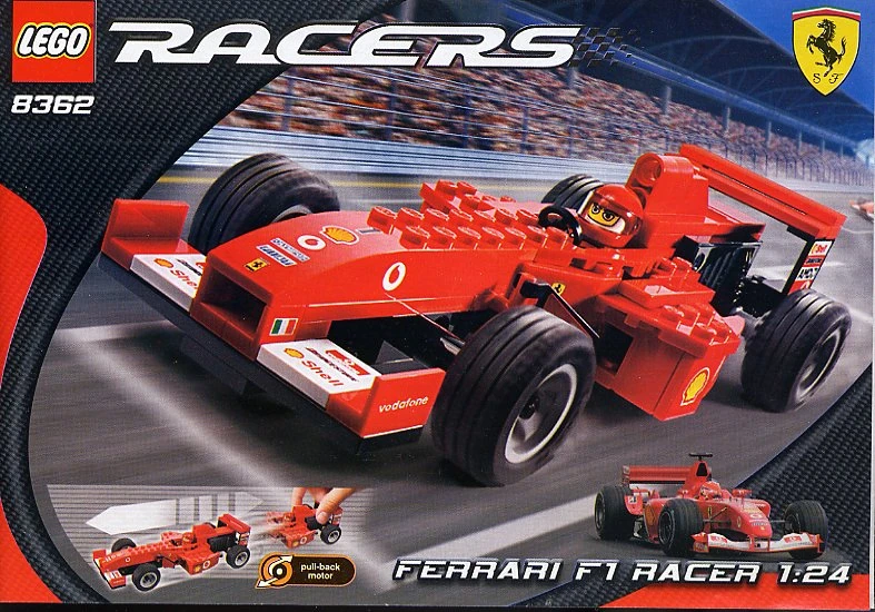 Ferrari started as a subtheme of the Racers theme in 2004. TECHNIC cars and System cars are included in this theme. Sets involving Ferrari racing events are included as well. However, there were Ferrari LEGO products before 2004. Early in 1997, a Model Team promotional set with Shellwas released. In 1999, 2 promotional sets with Shell (1253, 1255) included Ferrari cars as well.