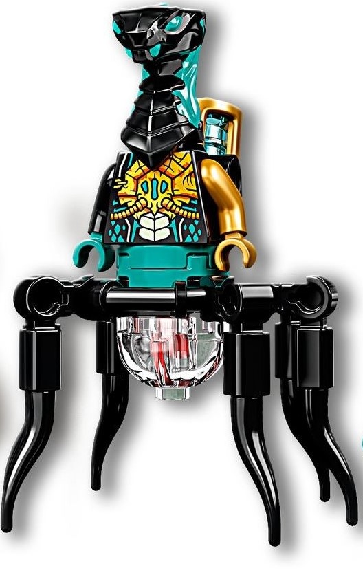 Glutinous has a set of six mechanical legs that are part of a larger build to which his torso is attached, similar to Daddy No Legs. Two different versions of this build exist, the one appearing in 71755 Temple of the Endless Sea while the other was released as a gift in the LEGO Ninjago Magazine.