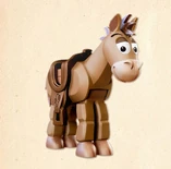 Bullseye was Woody's steed in the Toy Story theme. His unique mould has not appeared anywhere else. He is brown, with a uniquely moulded head possessing a cheerful expression, poseable legs, and a spiky mane and tail.