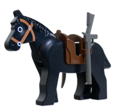 In 2012 a new type of rearing black horse appeared in the Lord of The Rings theme. The red-eyed Nazgul horse had a distinctive printing representing silvery bridle and ornate head armour. Another black horse - this time with realistic crescent-shaped eyes and brown bridle - was introduced in 2013 in Lone Ranger theme and the new wave of Castle theme sets.