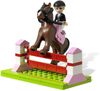 They have similar proportions to normal horses and are posed as though in marching position, with non-movable legs and necks. They have large printed eyes, long plastic tails, and manes swept to the right. A two-stud segment of their back can be removed and replaced by a saddle or hitching. Friends horses require special saddles and bridles.They can be decorated with a bow or awarded with a prize ribbon, thanks to the three little holes: one on the creature's forehead, one the right side of its neck, and one the base of its tail.